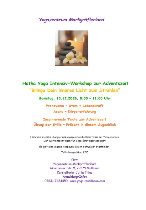 | 7:00 - 8:00 Meditation vor der Arbeit Atmen-Gehen-Sitzen Jutta | Samstags-Intensiv-Workshops mit Jutta N. Termine: 13.12.25, 8:00-11:00 4.1.26, 17:00-19:00 28.2.26, 8:00-11:00 | |||||